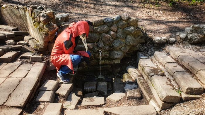 Чумной доктор Апациус прогуливается на территории усадьбы Середниково.