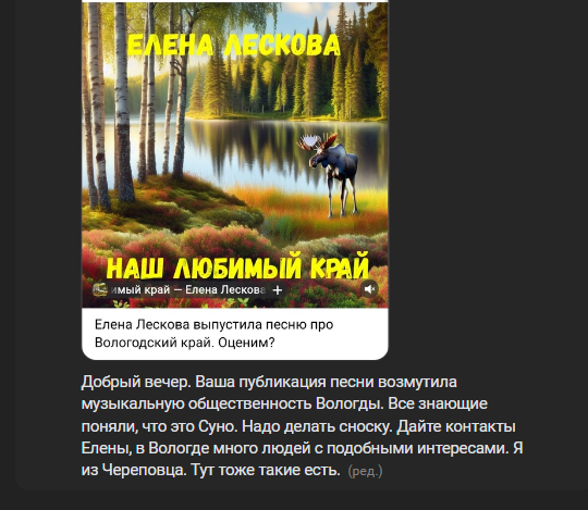 Возможно кто-то прочитает эту статью и пойдёт искать Елену Лескову, чтобы послушать песни и оценить "слышно ли робота?". Кому-то понравится песня из наших "вбросов", а кто-то увидит видео в тикток. Вариантов десятки.