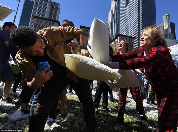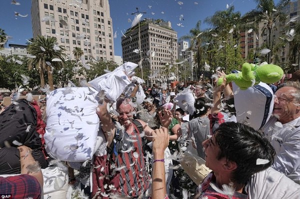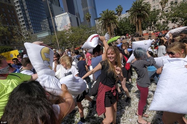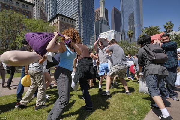 В Лос-Анджелесе и Нью-Йорке (США) прошла массовая битва подушками, принять участие в которой явилось множество людей, желающих весело провести время.