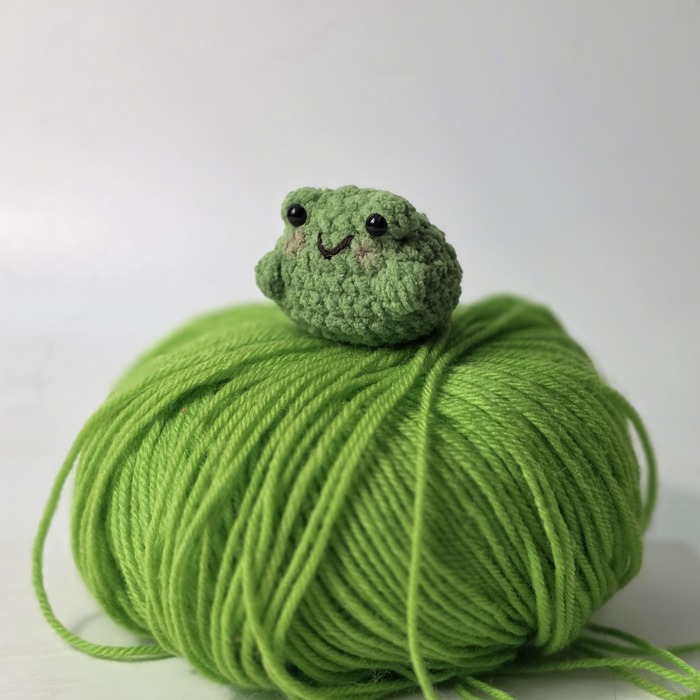 я вязала каждую игрушку около часа. Скилл растет, наверное, раз от пчелы до пузатой жабки доползла. 🤣 Я не знаю, из чего я вяжу, ну кроме ириса на пчеле и грибе. "Ирис" тот, который Спутник. Древний, короче. Пряжу на жабку мне подарили остатки. Крючок 2 мм. Иногда 1.05 мм.