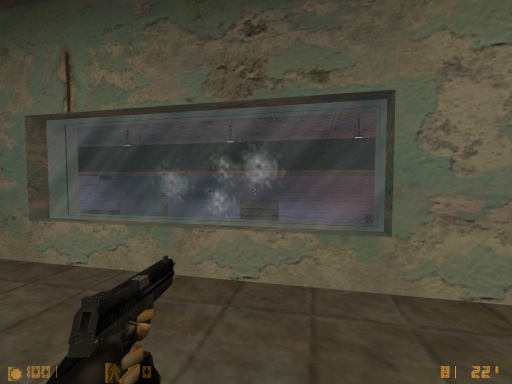 а вот если стекло можно разбить выстрелами, то и отметины от пуль будут иметь совсем другой вид (здесь - скриншот кастомной карты cs_chloro9):