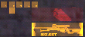 Надпись "select" на иконке оружия означает, что данный позиция в слоте активна и при нажатии соответствующей клавиши это оружие будет выбрано. Кроме того, иконка подсвечивается более ярким цветом.