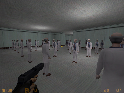 Именно по этой причине заложники на первых картах Counter-Strike выглядят как братья-близнецы. В отличие от ученых из ХЛ, заложники никак не реагируют на выстрелы, раздающиеся поблизости, и вообще спокойно стоят на месте, время от времени судорожно вздрагивая. Хотя на попадание в них пули отвечают конвульсивным подергиванием, например, поврежденной руки или ноги, а также легким наклоном корпуса, если пуля пришлась в туловище. Последнее сохранилось и во всех последующих версиях Counter-Strike.