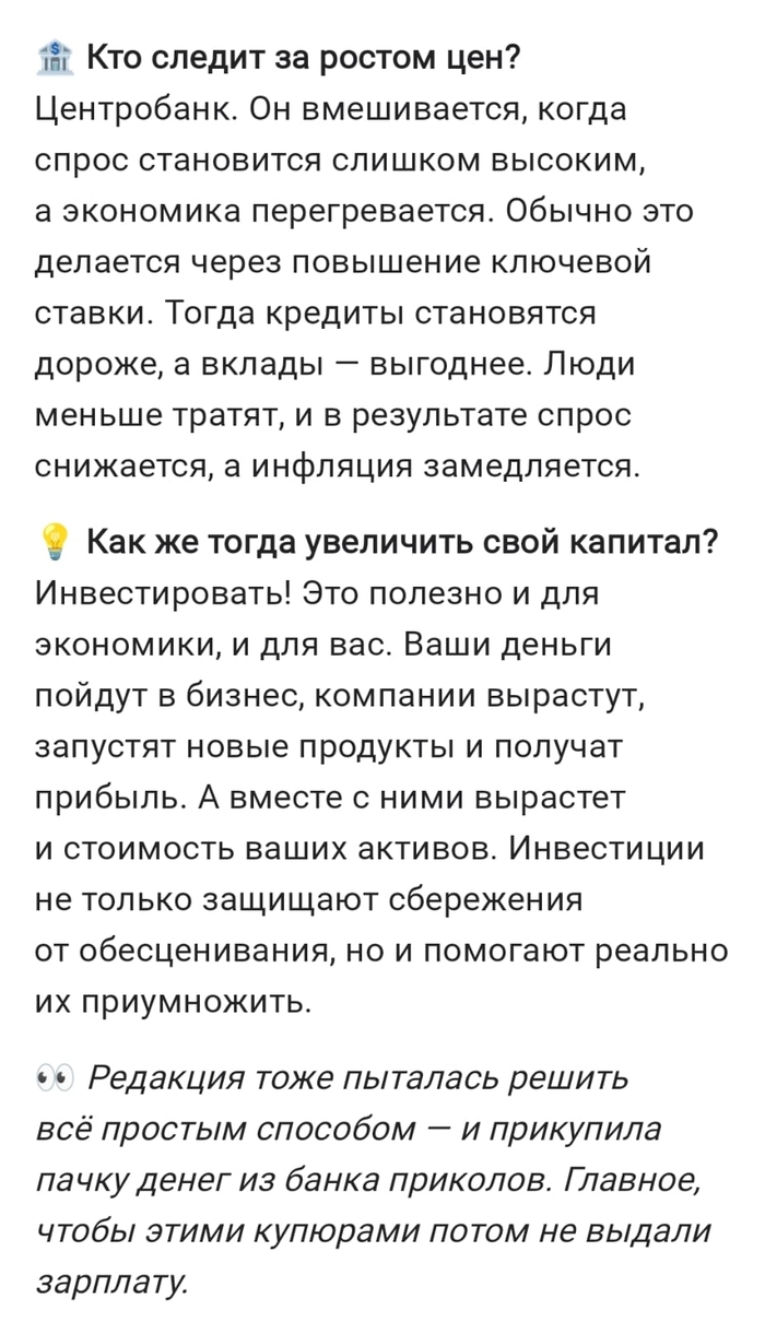 Она работает как скрытый механизм перекачки денег снизу вверх. Представьте, что новые деньги вливают в экономику через шланг, подключенный к карманам крупных банков и корпораций. Они, получив эти суммы первыми, тратят их по старым ценам, скупая недвижимость и акции, которые потом взлетают в цене. Пока эти новые деньги «докатываются» до вас в виде зарплаты, цены на всё уже выросли. Ваши сбережения на счетах тают, а их активы дорожают. Получается, инфляция облагает нас всех скрытым налогом, который и становится доходом тех, кто стоит ближе к «печатному станку».