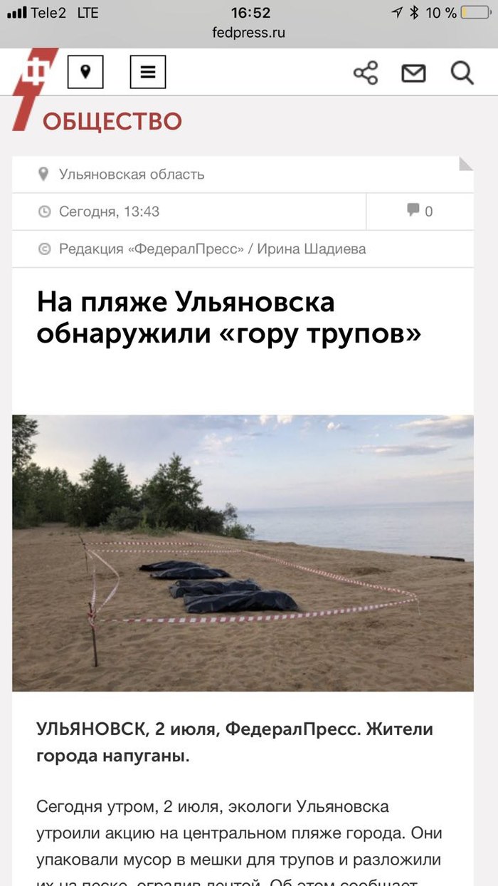Вчера местные СМИ быстро опубликовали новости о найденных мешках, пользователи начали активно обсуждать трупы это или что-то еще, но к сожалению долго интригу сохранить не удалось — мы заранее оповестили силовиков, а они дали «разоблачающий» комментарий (что это была экологическая акция) другим СМИ. А сегодня мы рассказываем всем зачем мы это делали.