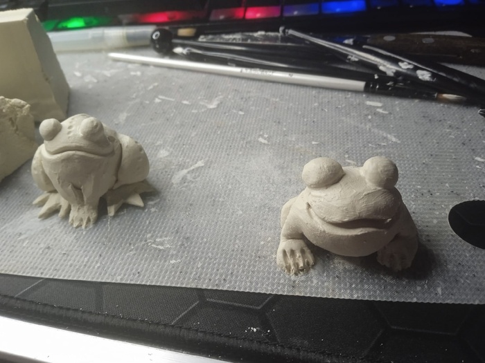 Недавно зачесались лапки и решила я вспомнить старую добрую художку, добыла самоотвердевающей глины и получились лягушонки. Теперь они сохнут и ждут росписи. На очереди конечно котики))