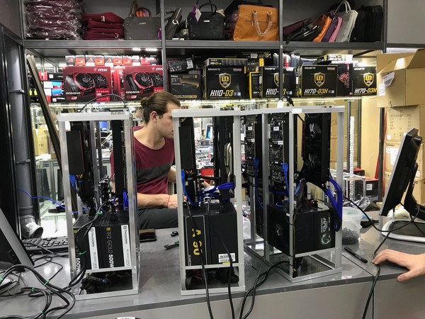 Хотя видеокарт в наличии в магазинах нет или практически нет, везде собирают фермы для майнинга. Ферма — это фактически компьютер с несколькими подключёнными к нему видеокартами. Фермы собирают, вручную делая стойки из металлических уголков, а сами чипы перепрошивают (разгоняют) для максимальной производительности: чем выше мощность, тем больше денег можно заработать на майнинге.