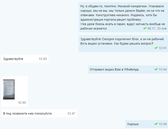 Пишу продавцу, мол, так и так. Что будем делать? Видео отправил ему в WhatsApp, указанный в его аккаунте на сайте.