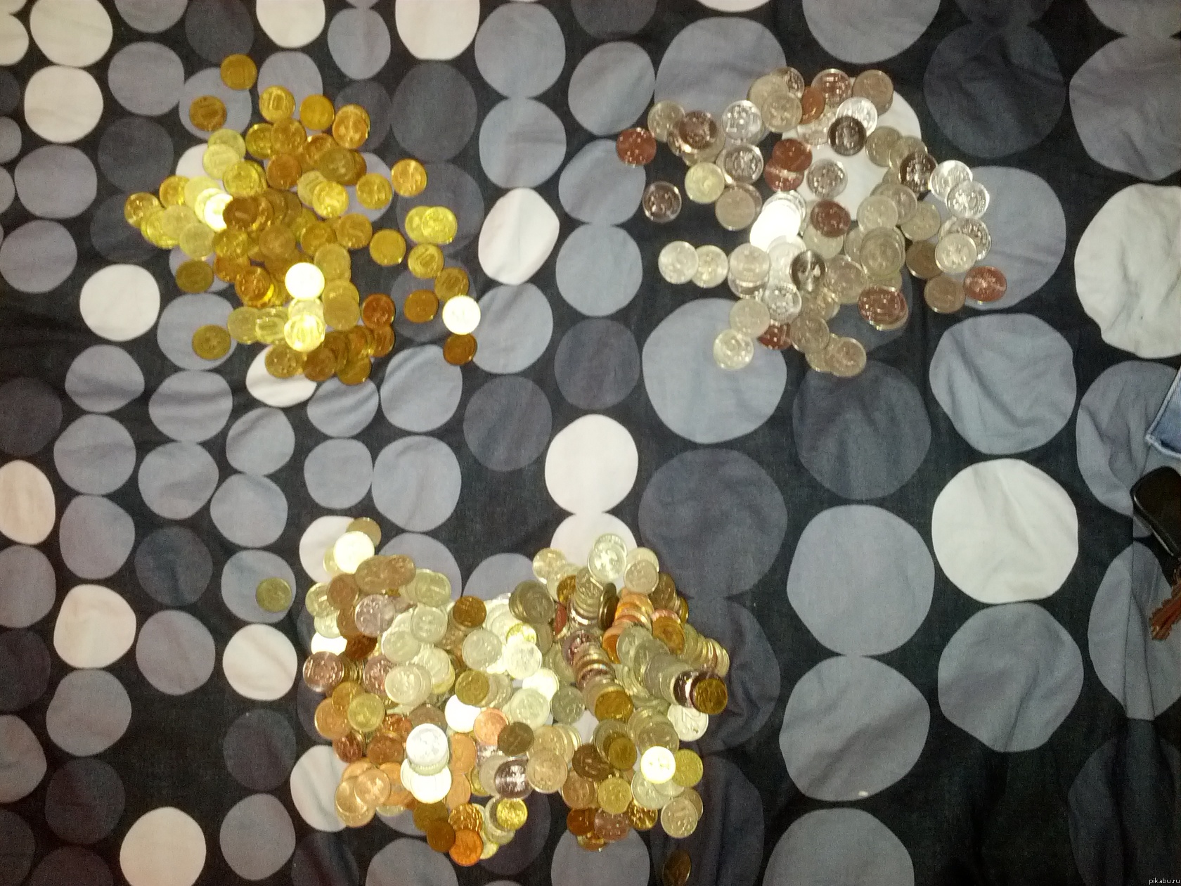 Закончились деньги, а зарплата только в пятницу, решил собрать всю мелочь... получилось 1020 рублей чириками, 505 пятерками, а остальную мелочь ещё не посчитал)