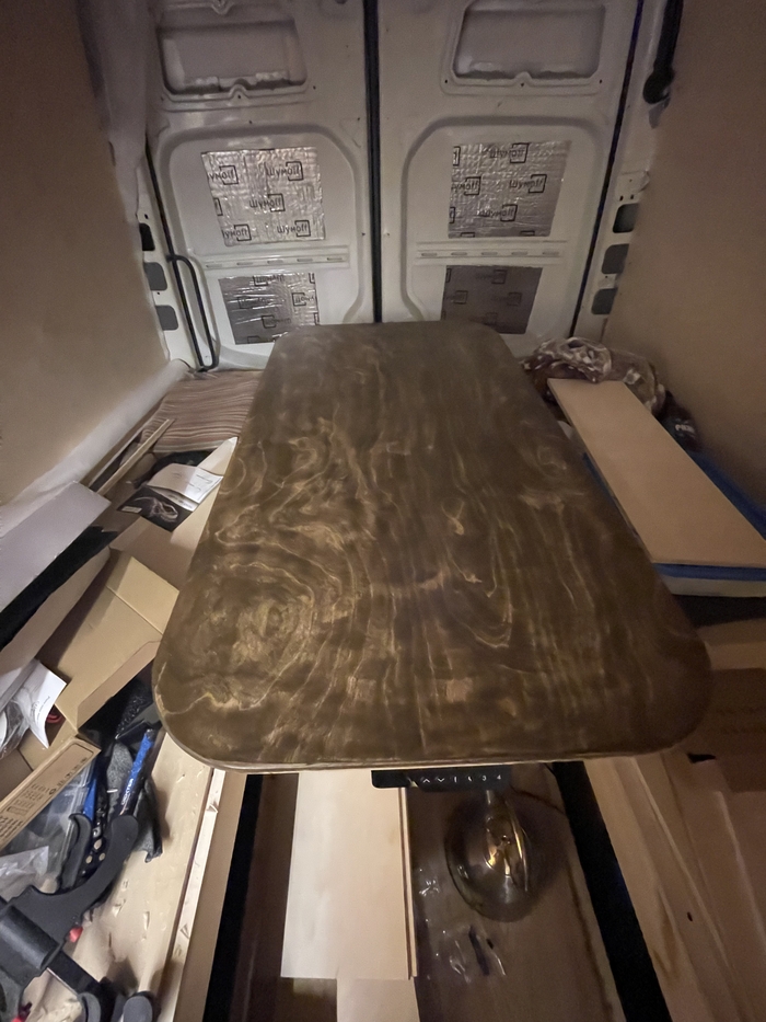 Ну и на сладкое, это стол трансформер в спальной зоне! Белые пятна это от моих кривых рук, тоже попробую исправить, надеюсь успею к следующей пятнице.