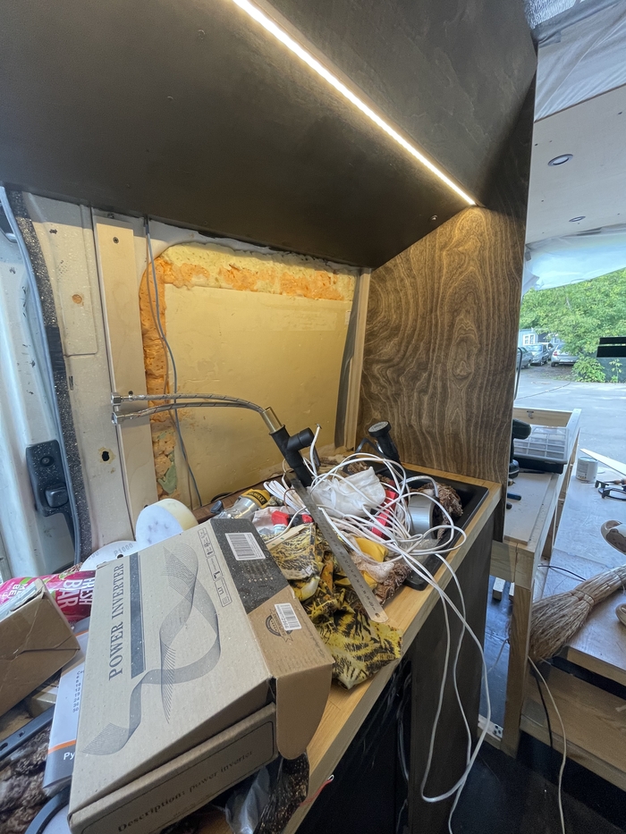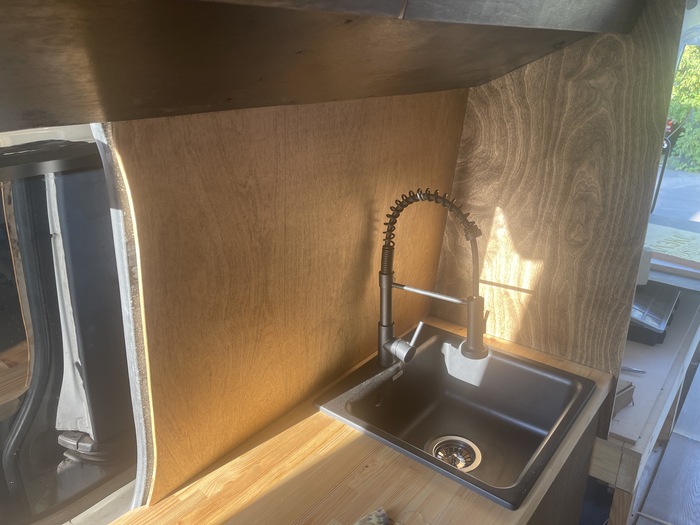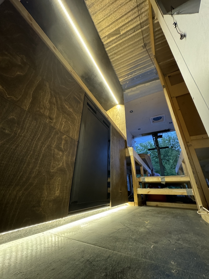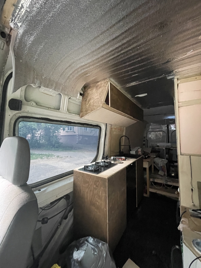 Плюс сделал потолок и стены в спальной зоне прикрутив 4 мм фанеру, в дальнейшем наверно будем клеить кожзам на подкладке.