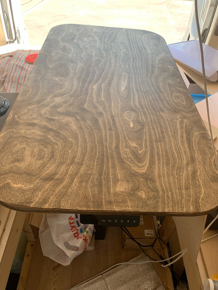 Было три варианта покрытия: просто краска, морилка/лак и масло/ воск. В итоге понравился последний вариант, он и проще и текстуру березы( фанера из березы) очень хорошо проявляет.