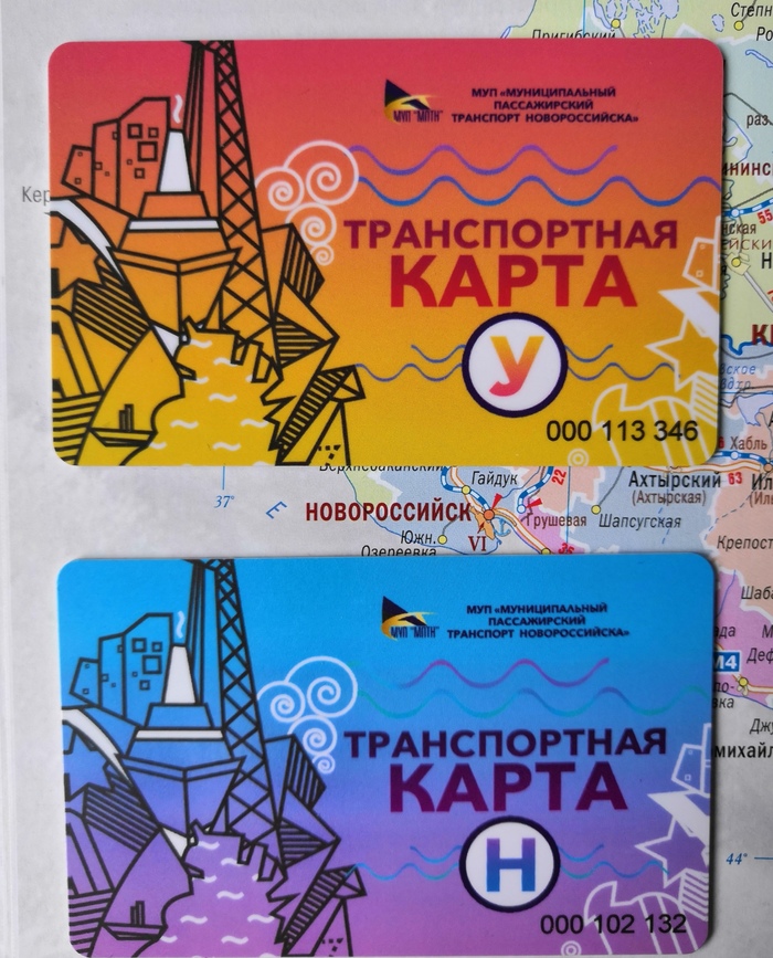 Другая хорошая девушка @murena12, которую также зовут Татьяна, прислала мне транспортные карты Новороссийска. Карт 2 штуки, отличаются только цветовой гаммой, и то, что верхняя предназначена для пользования школьниками.