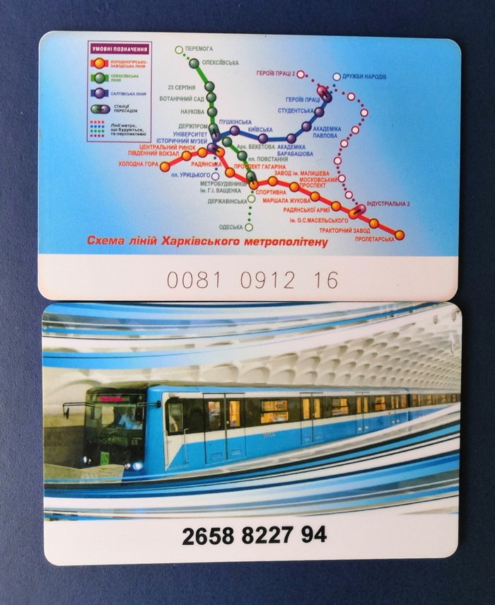 Начну с карт, которые долго ко мне шли из украинского города Харьков, которые мне отправил добрый человек Александр @Sensat1on. Ниже эти 2 прекрасные транспортные карты, если передние стороны этих карт почти одинаковые, то реверсы - нет. Особенно удобно размещать схему метро на саму карту).
