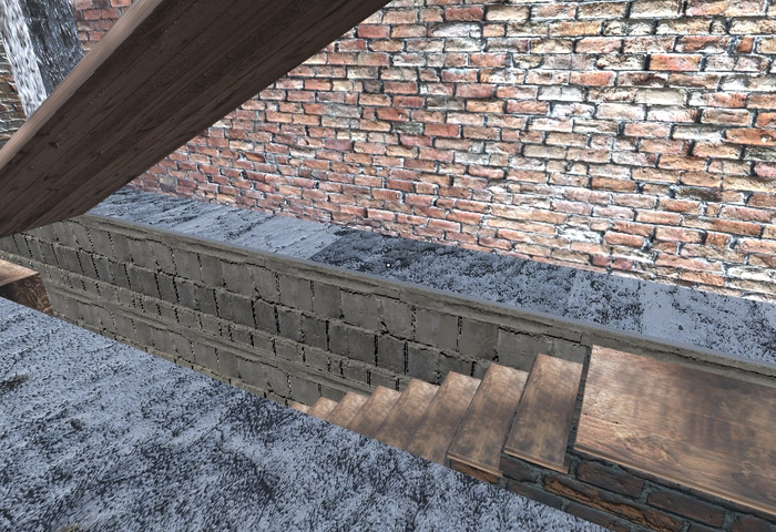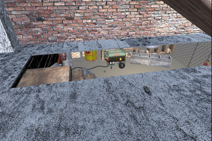 Первой логической несостыковкой стал открытый люк, ведущий с первого этажа. В него можно было заглянуть, и поэтому пришлось часть моделей переносить и на этот уровень. (Пол ещё был тонким):