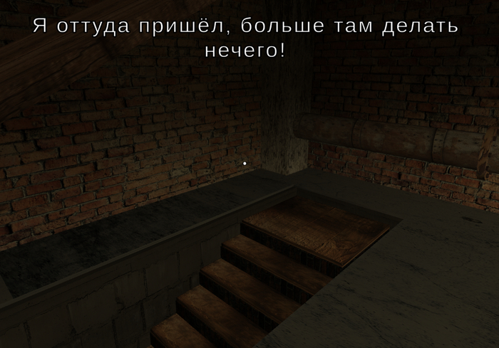 Но он всё ещё как бы манил игрока вернуться вниз в подвал (что точно не входило в наши планы), поэтому пришлось сначала ограничить к нему доступ: