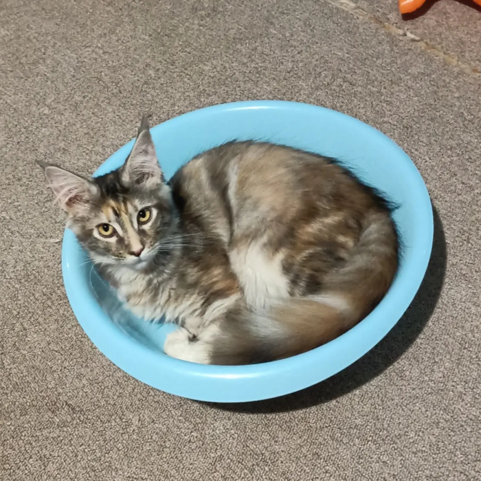 Шелли:она у нас мамзель.прям такая девушка брезгливая и с характером. Потрогать её лишний и без разрешения раз нельзя, сразу начинает мыться,вылизываться и нервничать. Но! Любит мужу и сыну голову лизать. Хз что за фетиш. На ручки тоже идёт,и когда хочет внимания подходит ко мне и тянет лапы вверх,поставив их на меня. Хотя личное пространство это прям для неё на первом месте.Выдаёт своим голосом всякие заковыристые "мур мя". Ест сухой корм Роял Канин,а так же огурцы иногда. У нас маленькая дочь пытается с кошками взаимодействовать. Понятно что пока по своему,за хвост взять,за лапку потянуть. Учу,что киску обижать нельзя,естессна. Но лучше всего дочку этому учит сама Шелли. И за палец цапнуть может,и лапой по рукам дать. Пару раз кошка сбегала на улицу (мы в частном доме живём) там её переклинивало и домой она возвращаться не хотела, пришлось ловить рыболовным садком. Сидит на тебя смотрит как на чужого человека. К лотку приучала с боем! Заводчица говорила что лоточек кошка знает,но дома она упорно делала вид,будто лоточек вообще впервые видит и знать не знает для чего он.Много у меня нервов ушло, даже мужу говорила в порыве злости "нафига мы её купили?!" Дело в том,что за месяц до приобретения Шелли,мою рыжую кошку загрызли собаки на улице, насмерть. Нам не хватало дома рыжули,муж очень переживал и в итоге как-то решились завести другую через месяц. И сразу мейн-куна да, всегда хотела))Хотя наверное даже больше муж хотел, говорит для меня (или всё же для себя? 🤔) У тётки было 3 котёнка. Мы ехали за рыжей,а взяли эту(дада,мужу именно она понравилась, красотка)) Я поначалу к ней относилась ровно, позже привыкла и полюбила. И ни капли не жалею ,что мы завели таких кошек. Я их очень люблю.Она такая забавная и умная! На столе оставляли пластиковый контейнер с сухим кормом. Так эта мадама научилась скидывать его со стола,он падает, крышка открывается и они тут пируют ночью. Мы их по графику кормим,вот эта идея,чтобы жрачка всегда была в тарелке,мне не близка. Они тогда постоянно будут жрать
