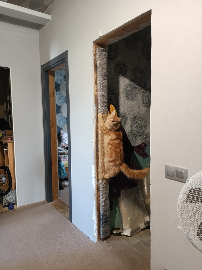 Многие пишут что их мейн-куны выливают воду из миски. У нас не так. Шелли перед тем как пить шкрябает лапами линолеум перед миской,потом пьёт. Когтеточка на ура. Я сделала 2:одна во всю высоту дверного проёма,другая из пластиковой трубы 1 м. Ничего нигде больше не дерут . Когти острые как у росомахи. Не стригу и никогда этого не делала