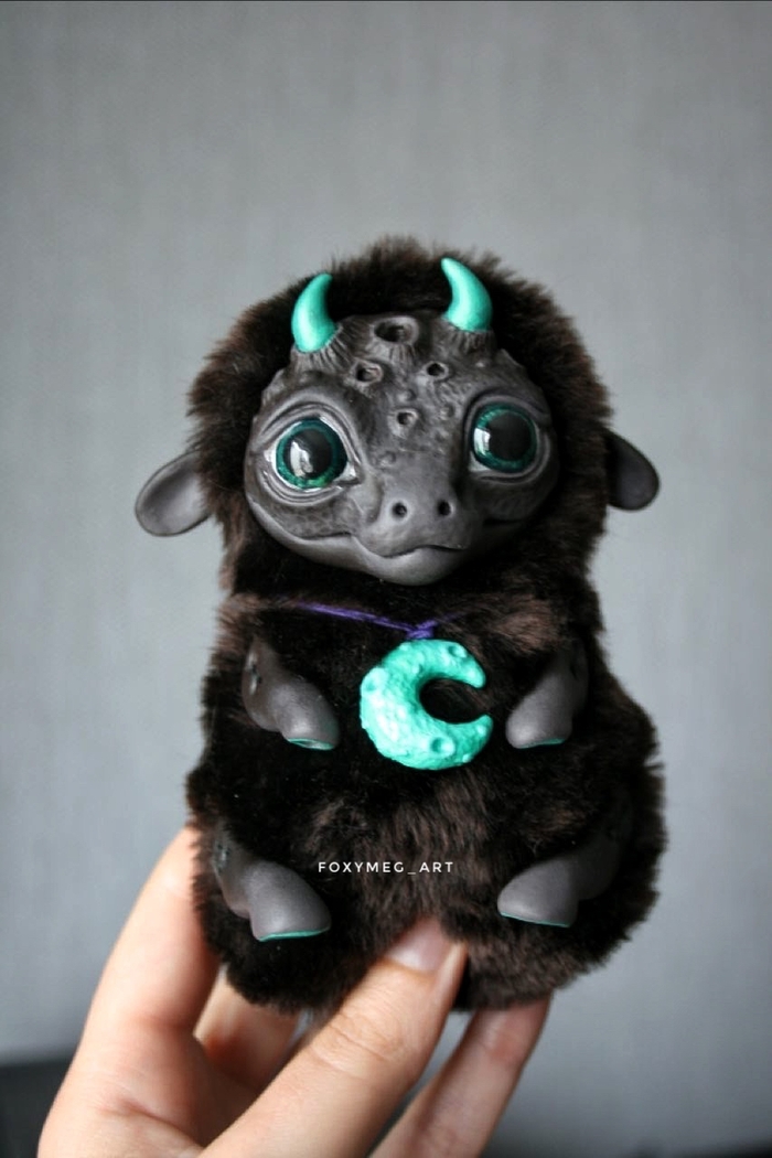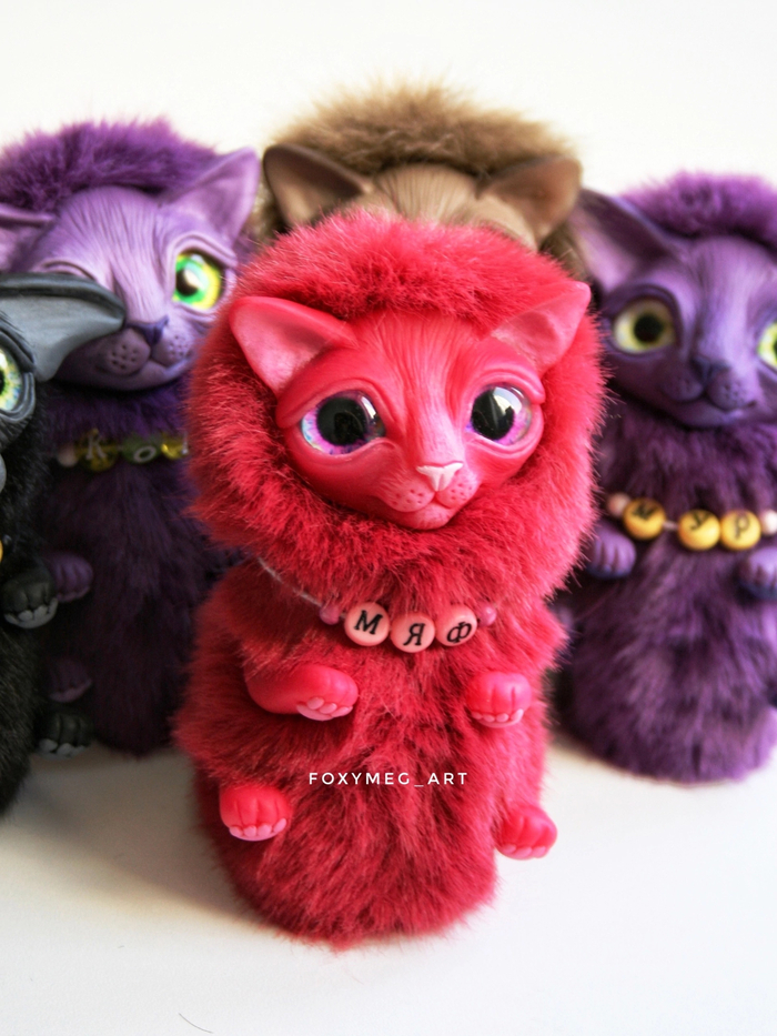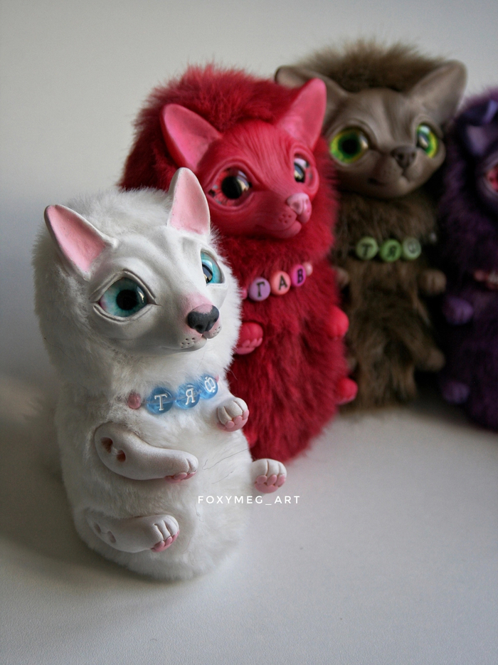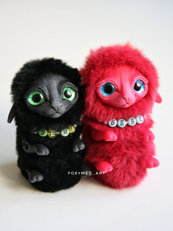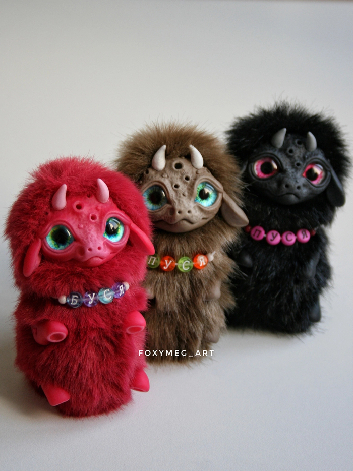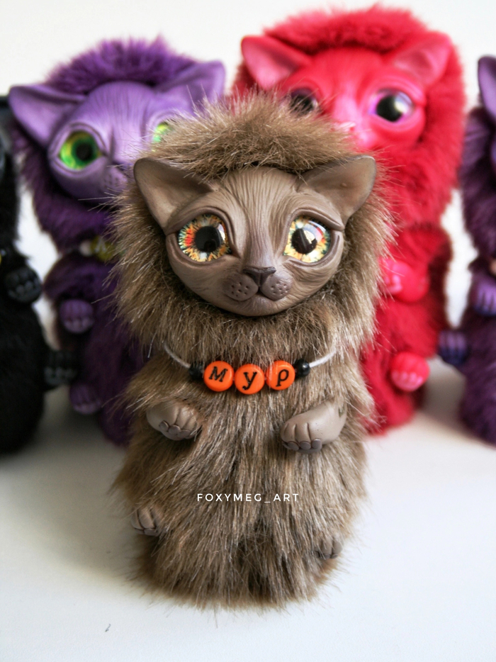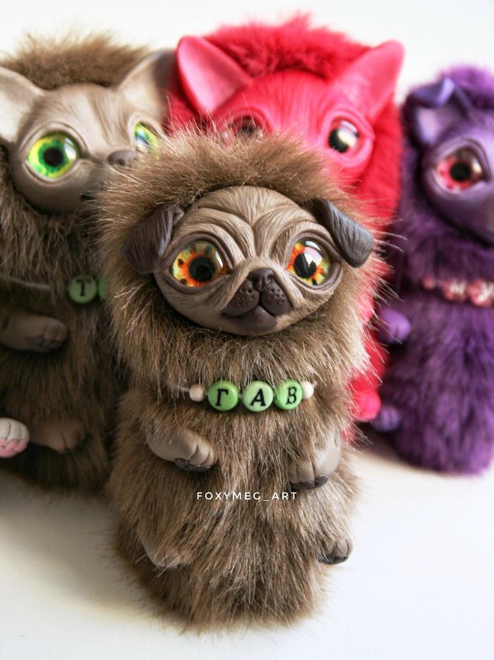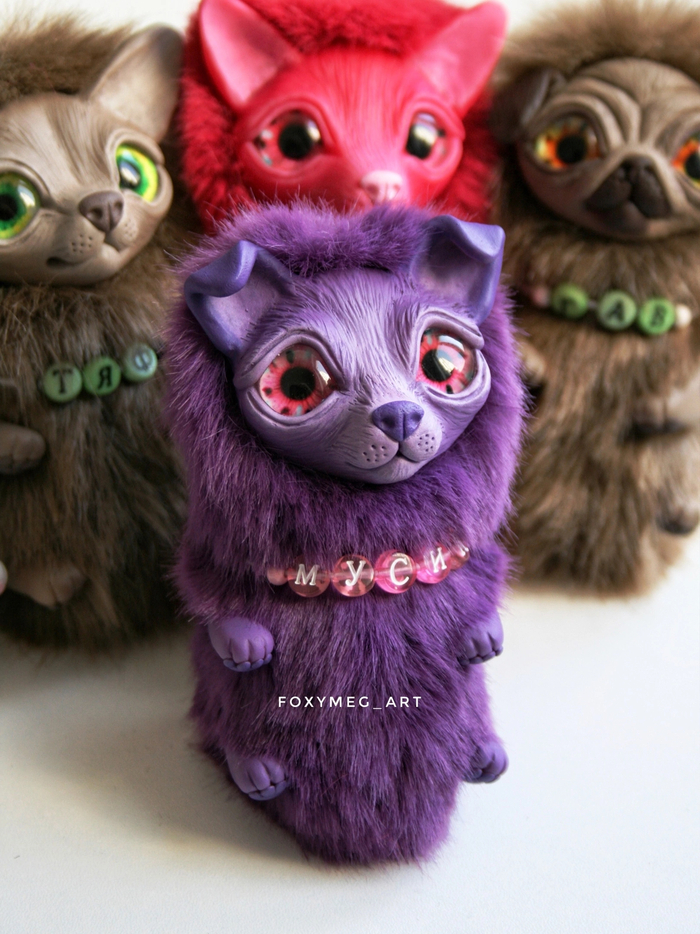 Материалы: полимерная глина, искусственный мех, бусины, акриловые краски, стеклянные глаза.