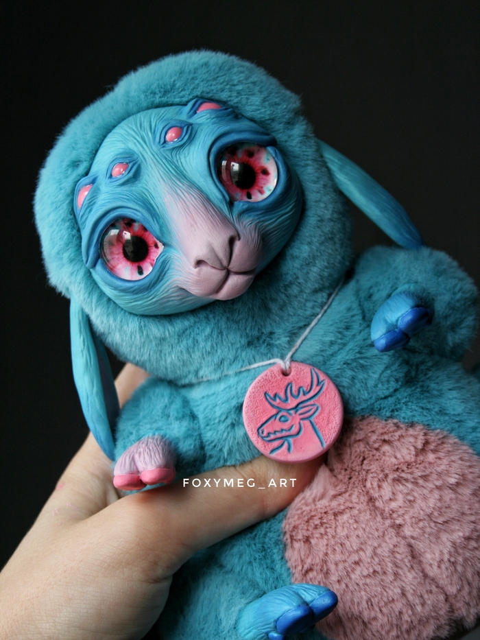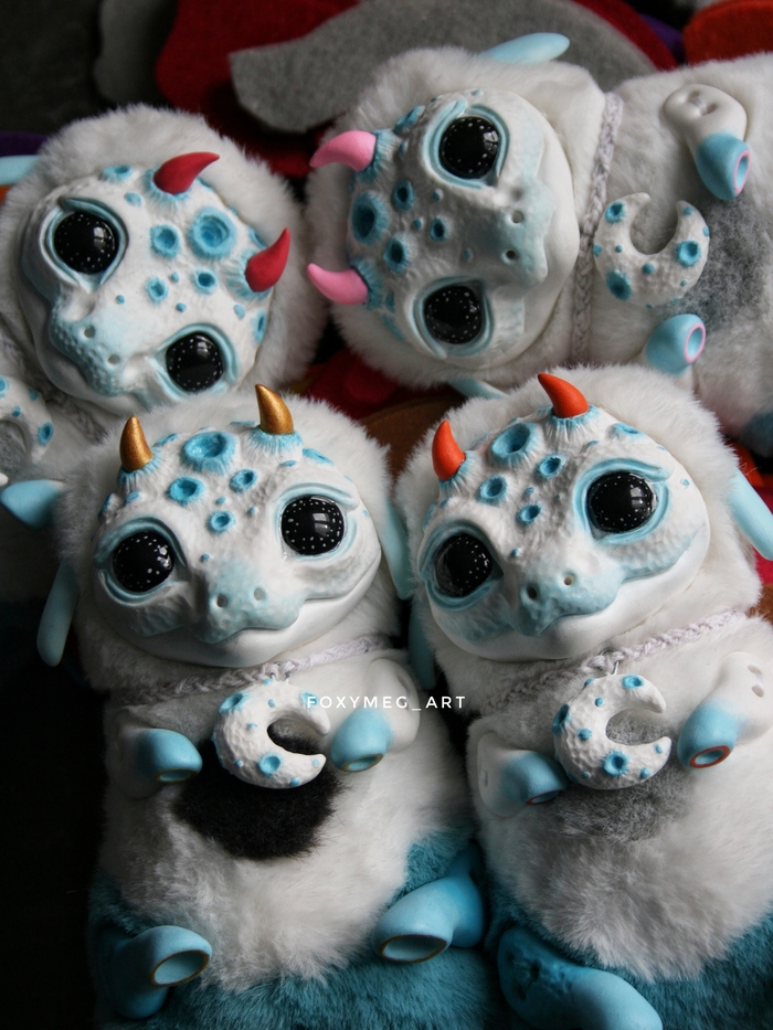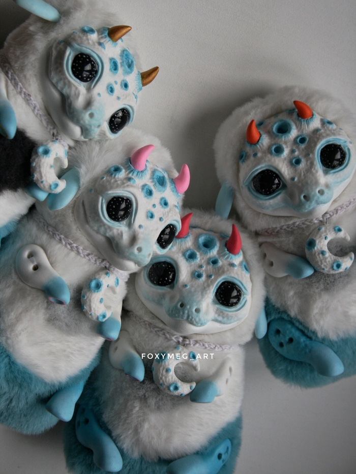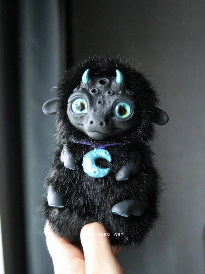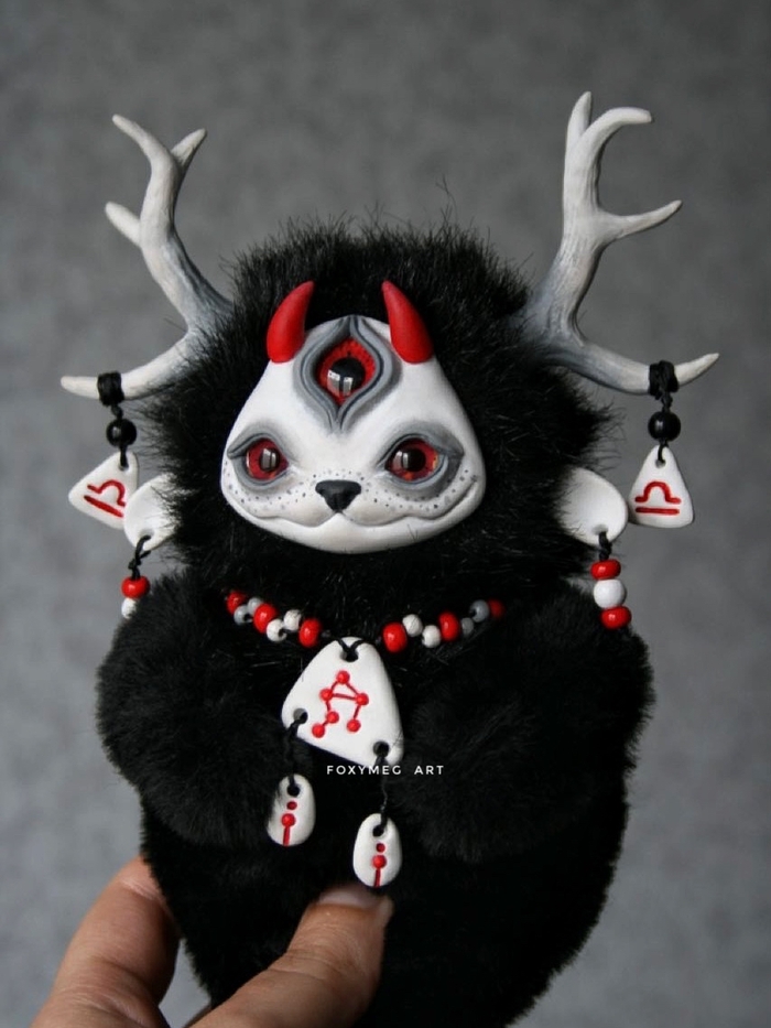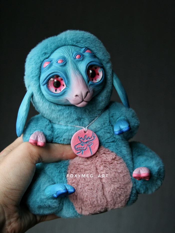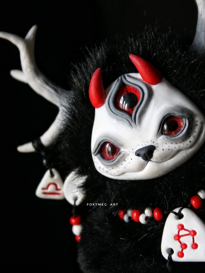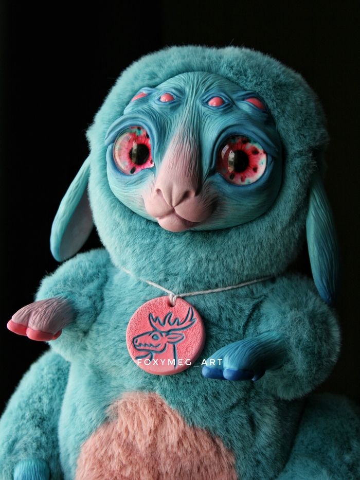 Материалы: полимерная глина, искусственный мех, бусины, акриловые краски, стеклянные глаза.