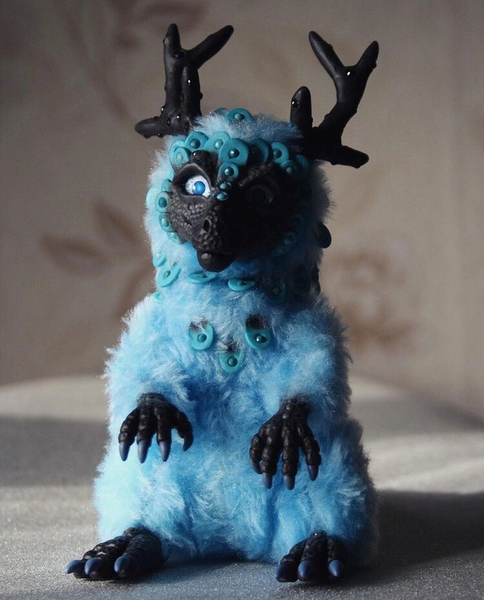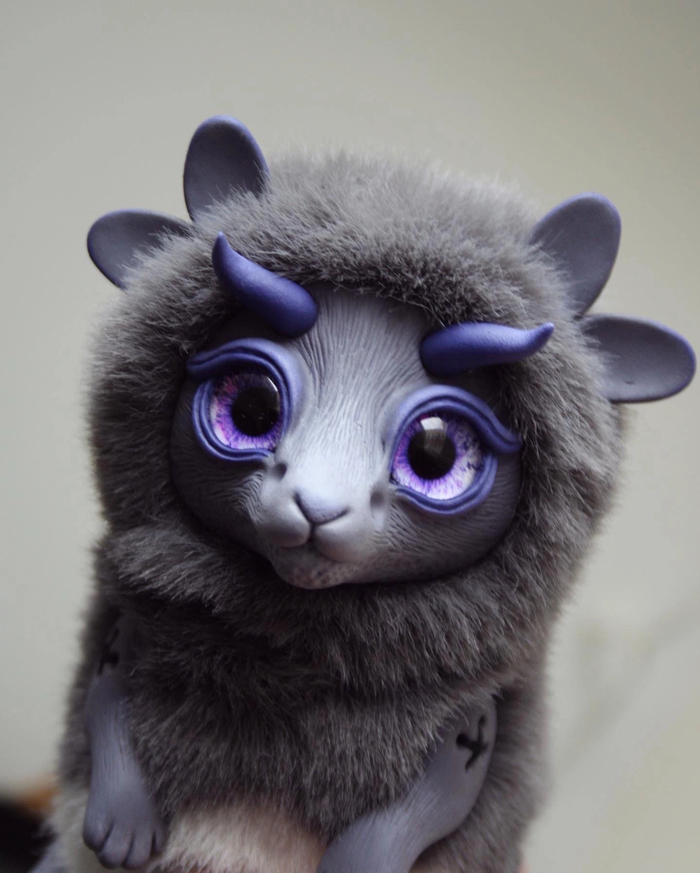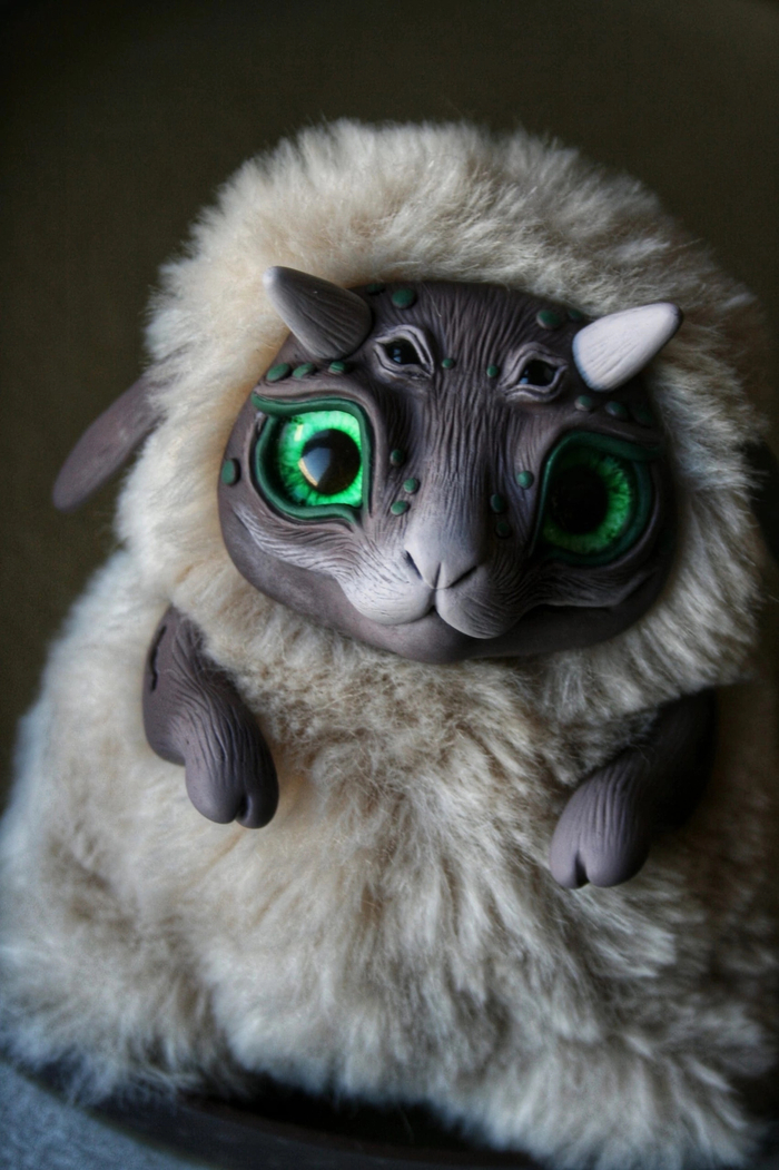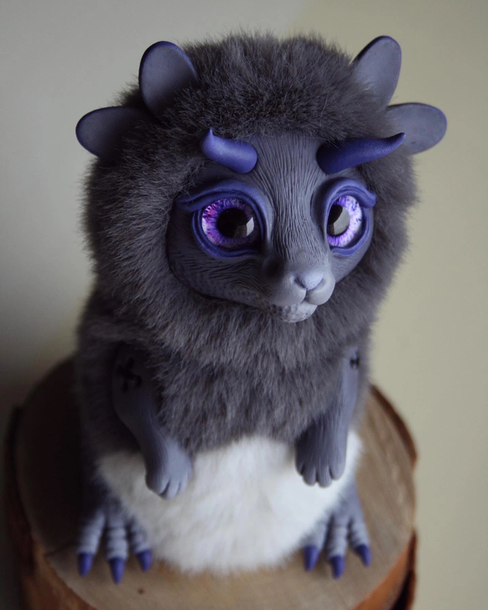 Материалы: полимерная глина, акриловые краски, искусственный мех и синтепоновая набивка.
