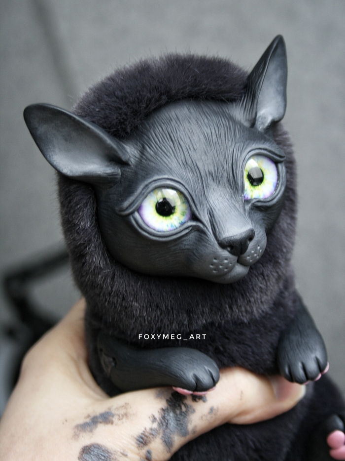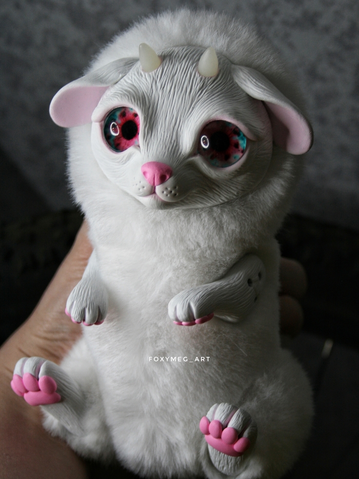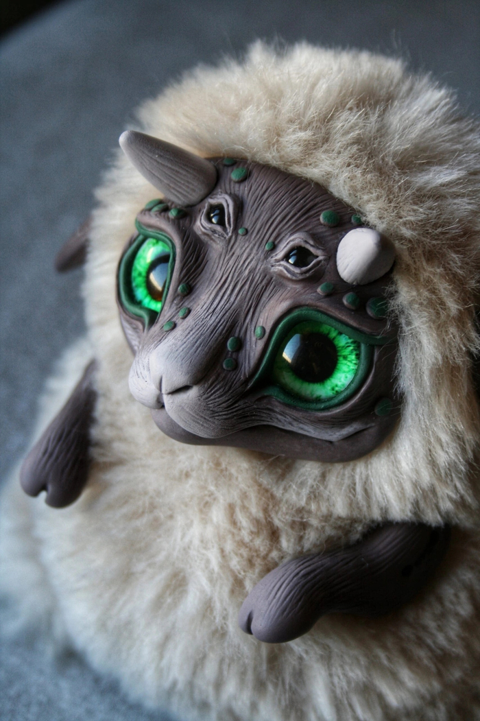Материалы: полимерная глина, стеклянные глаза, акриловые краски, искусственный мех и синтепон.