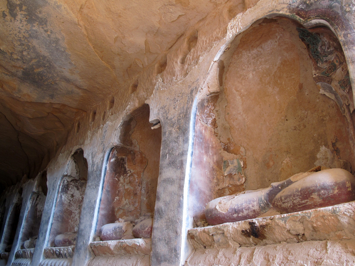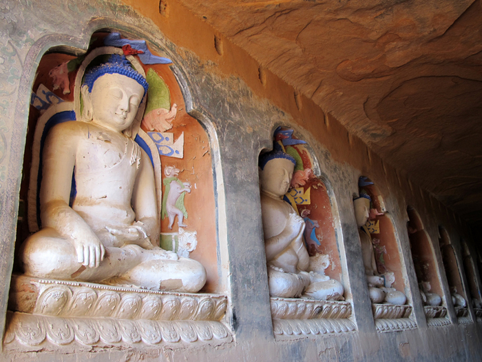 Это храм Тысячи будд из 33 пещер. Будд там действительно много, в разной степени сохранности: кто-то целиком, от кого-то одно место осталось. Есть совсем древние, есть новодел.