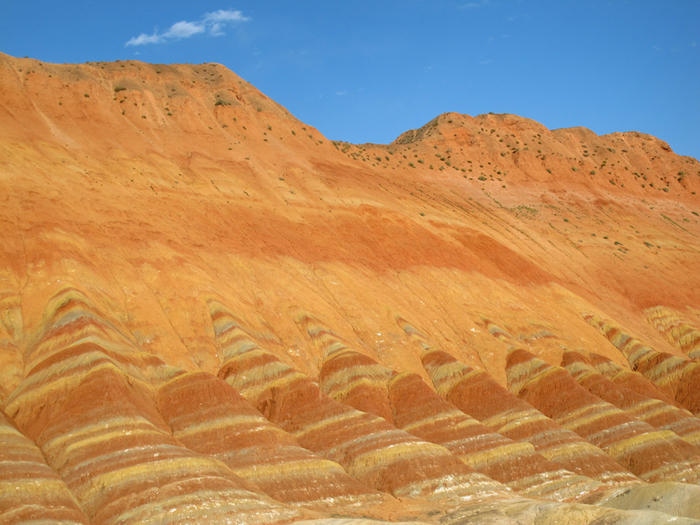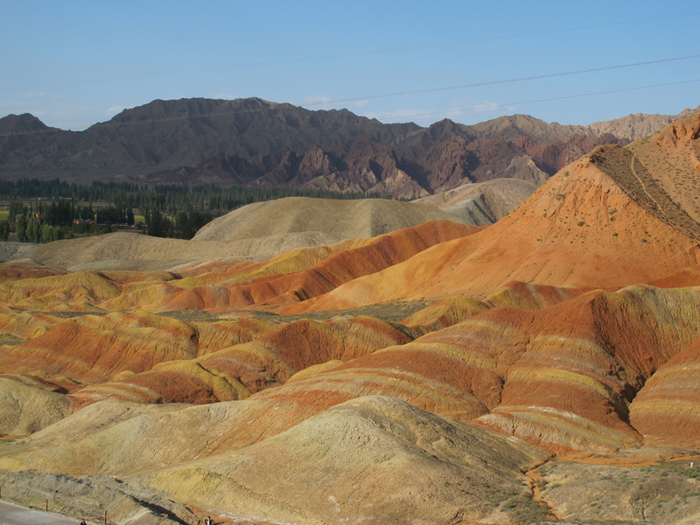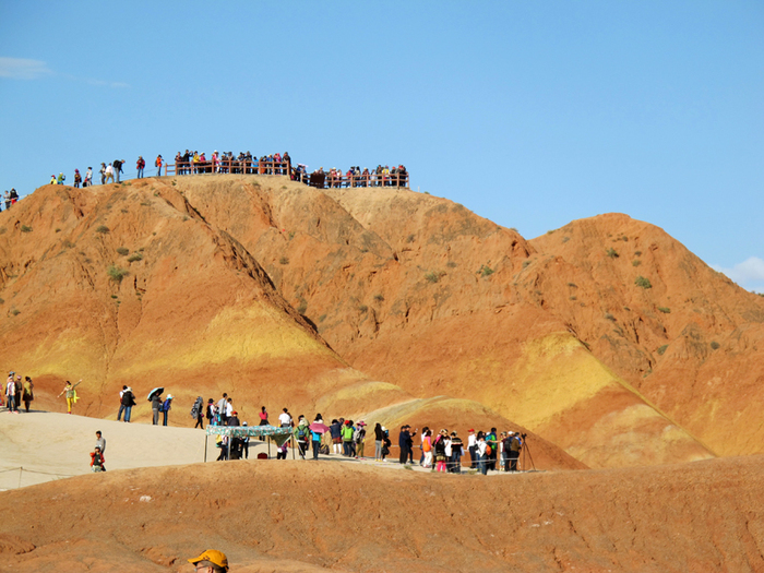 Последней точкой маршрута перед возвращением в Пекин у нас были холмы Данься. Да, они действительно яркие, особенно на солнце. Но не настолько, как на большинстве фотографий в интернете. Для туристов открыт небольшой участок холмов, самый красивый. Вокруг есть и другие выходы этих разноцветных пластов, но менее цветные. Всё строго огорожено, передвигаться можно только по дорожкам, между смотровыми площадками ходит автобус.