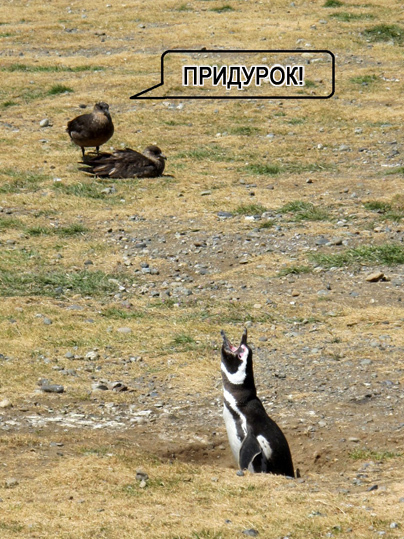 Но пингвины орут громче. Просто чайки орут нон-стоп, а пингвин становится поудобнее, откашливается задирает голову и вопит в небо. Возможно, это брачный вопль. Возможно, его просто всё достало. Тут сложно разобраться.