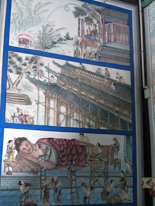 Кроме холмов, в Данься есть ещё храм, где находится самый большой в мире лежащий Будда, сделанный из глины на деревянном каркасе. Тут каждое слово важно! Где-то есть просто самый большой Будда, есть самый большой лежащий, а вот лежащий, из глины и на деревянном каркасе - это здесь! И история его создания прилагается в виде комикса. В принципе, понятно.