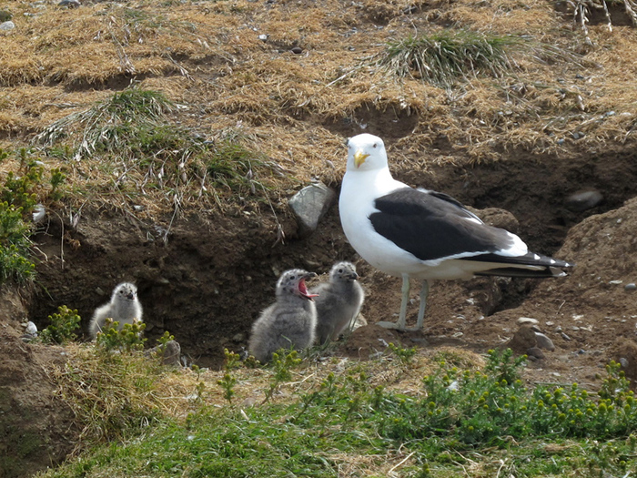 Остров с пингвинами делят чайки. В отличие от благонравных пингвинов, это склочные создания, которые норовят ограбить чужое гнездо и даже на птенцов налетают. И орут.