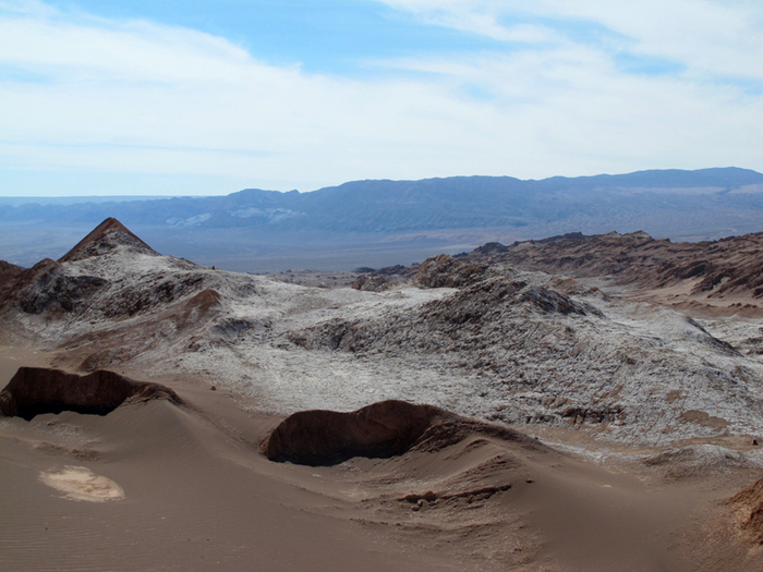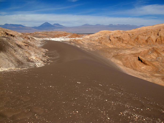 Одно из самых красивых мест в пустыне Атакама - долина Луны (Valle de la Luna) рядом с Сан-Педро-де-Атакама. Совершенно инопланетные пейзажи.