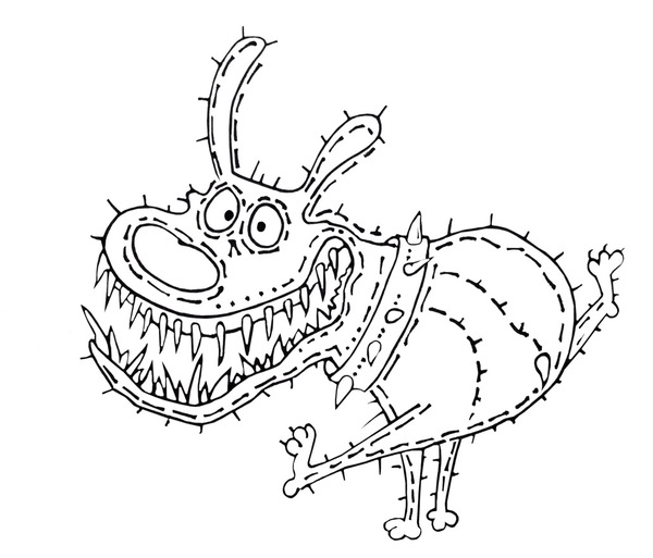 Если устали - обведите в круг, пишите снизу "Dogs of war" и в тату-салон... Но мы не сторонники полумер. Нам нужна целая собачка. Рисуем тело. Не бойтесь - рисуйте криво и неровно. Все скроет пунктир. Ошейник не обязателен. Тринадцать: