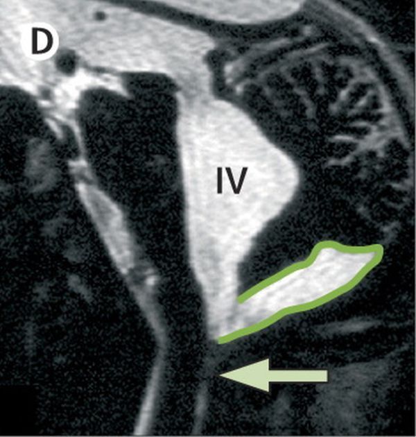 Снимок D: Т2-режим МРТ область задней черепной ямки.