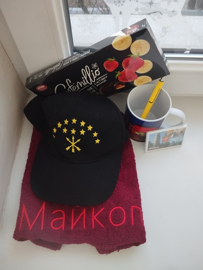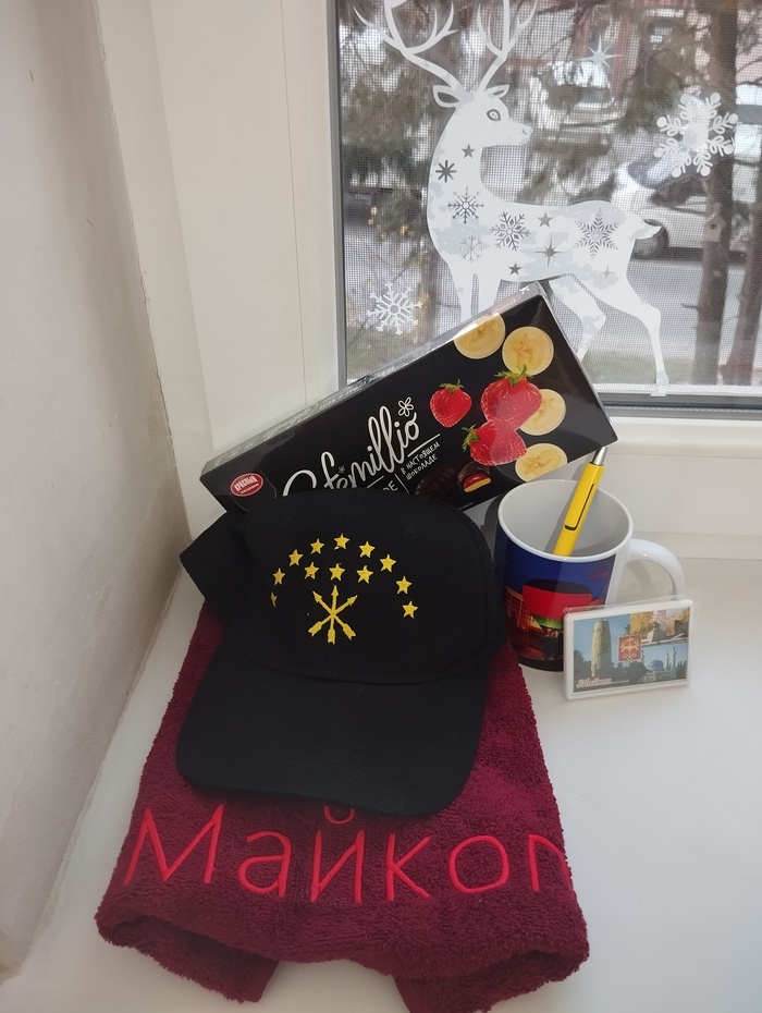 Вот и я успел получить свой подарок на НГ по новогоднему обмену. Субъективно данный подарок ничего не связывает с Новым годом. Весь подарок на фото, наклейка на окне была раньше. Попытался сделать фото так, чтобы немного придать ему новогодности)))