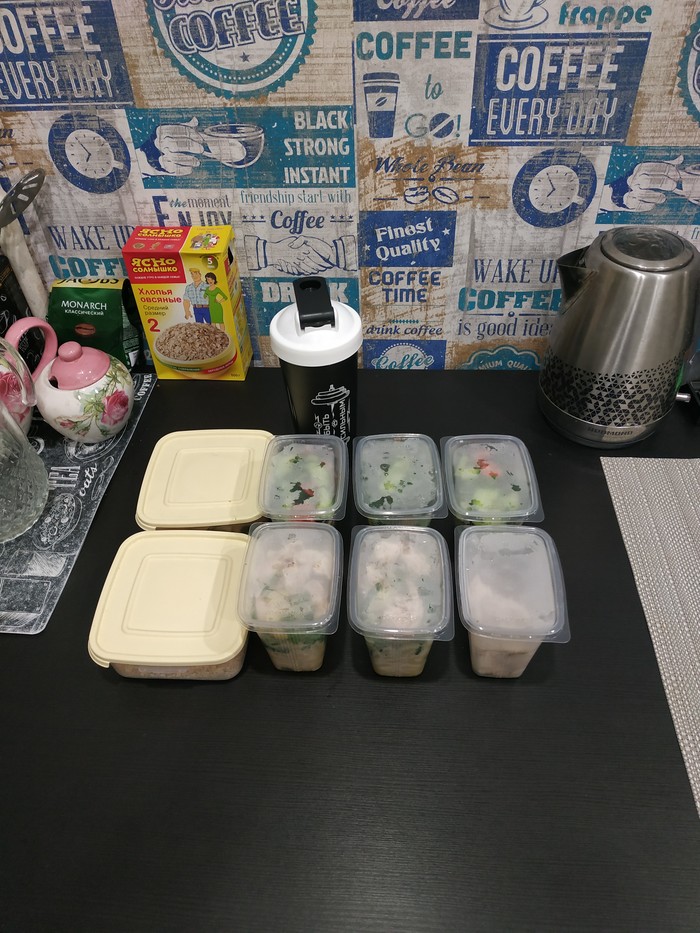 Теперь немного о рационах. Я составил их несколько, и следовал им. Гораздо проще заранее посчитать сколько и чего нужно, составить программу питания, и следовать ей.