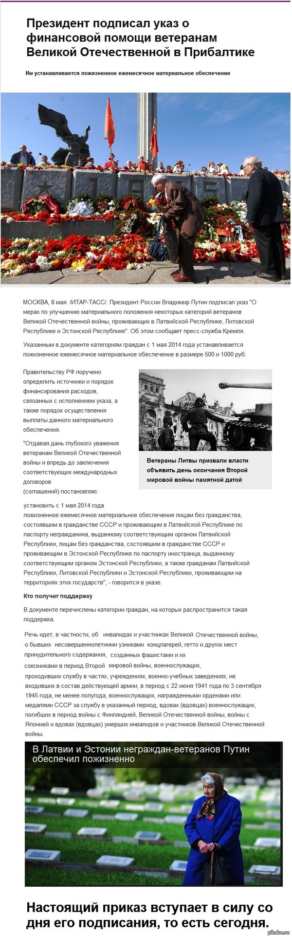13 FreemanX Президент подписал указ о финансовой помощи ветеранам Великой Отечественной Войны в Прибалтике 11 лет назад Владимир Путин Указ Ветераны Великая Отечественная война Прибалтика Россия