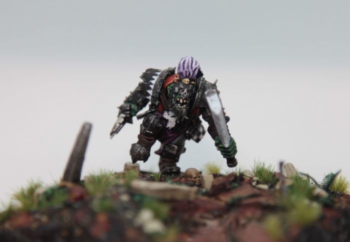 Как говорил известный почтальон: "Я почему раньше рисовать не умел? Потому что у меня масляной краски не было." Вся модель после акрила густо замазана масляной краской, что на мой взгляд очень помогло скрыть мои неумелые переходы. Плюс при помощи масла я попытался создать ощущение зеленовато-желтого света на рыцаре.