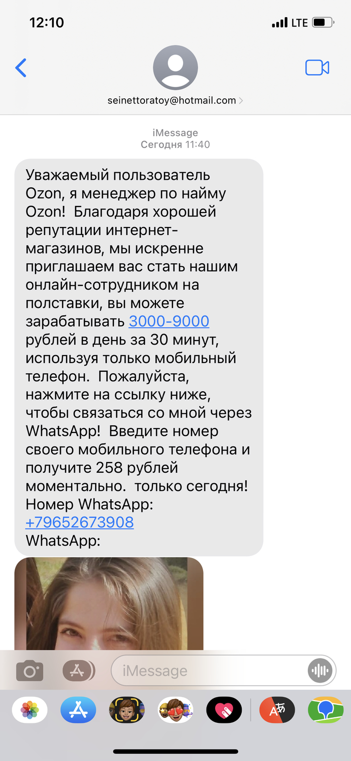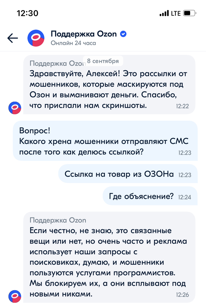 Отправил сегодня в ВатсАп ссылку на товар в ОЗОНе. Время 11.40