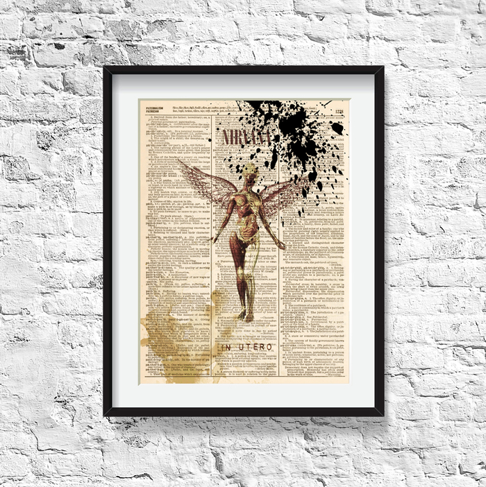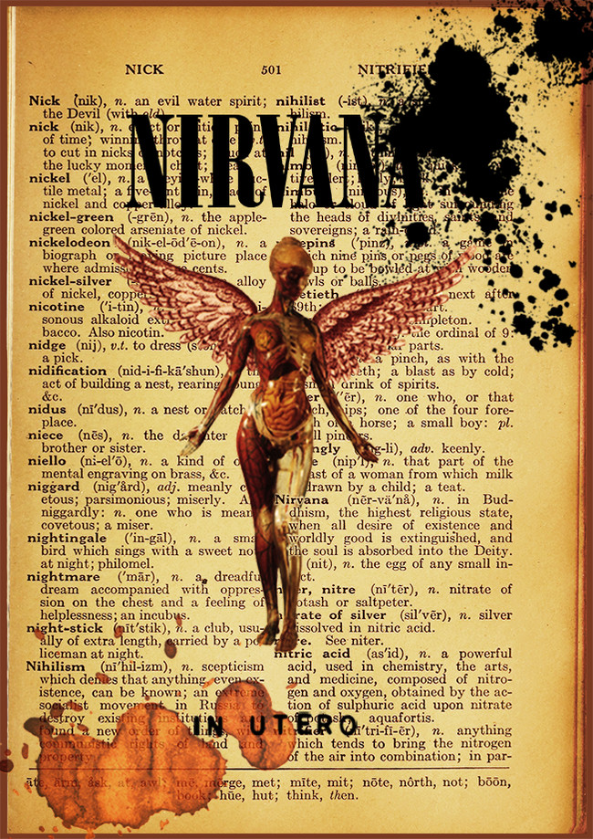 Идея, взять страницу из словаря, с толкованием слова, в данном случае, это название группы Nirvana (сам магазин, почему-то, не развил эту мысль, и у них была просто рандомная страница), заставила меня ещё больше проникнуться таким глубоким, творческим решением.