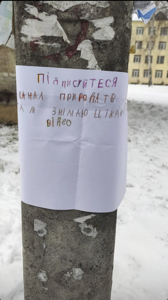 8 февраля пользователь Сонькоу обнародовала в соцсети Twitter фотографию написанного от руки объявления на уличном столбе. Автор рекламы детским почерком просил людей подписываться на YouTube-канал "Природа ТВ", обещая интересные видео.