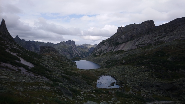 Едем в Ергаки. Подбираем по пути инструктора, оставляем машину у базы МЧС, регистрируемся там же. Идем до базового лагеря Альптрека, по пути там-сям висят упоминания о медведях, что придает скорости передвижения. Дошли, ужин, ночевка в базовом лагере, завтрак и, наконец-то, выход на маршрут. По плану втроем с инструктором идём на Параболу, ночуем у озера Художников, на следующий день идем до Висячего Камня, потом возвращаемся в базовый лагерь, ночуем, спускаемся к машине.