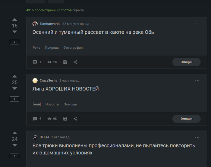 Но если я авторизуюсь на сайте, то на вкладке Горячего я вижу посты с рейтингом 16 и с парой комментариев.