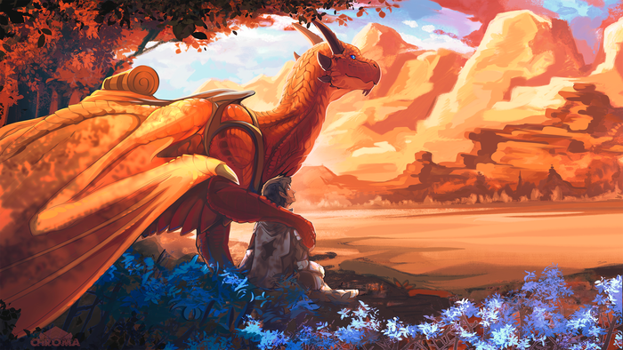 42 FurryTiger 5 лет назад Драконы Отдых в путешествии Ссылка на арт Пейзаж Арт Дракон Фэнтези Chromamancer Ещё 0