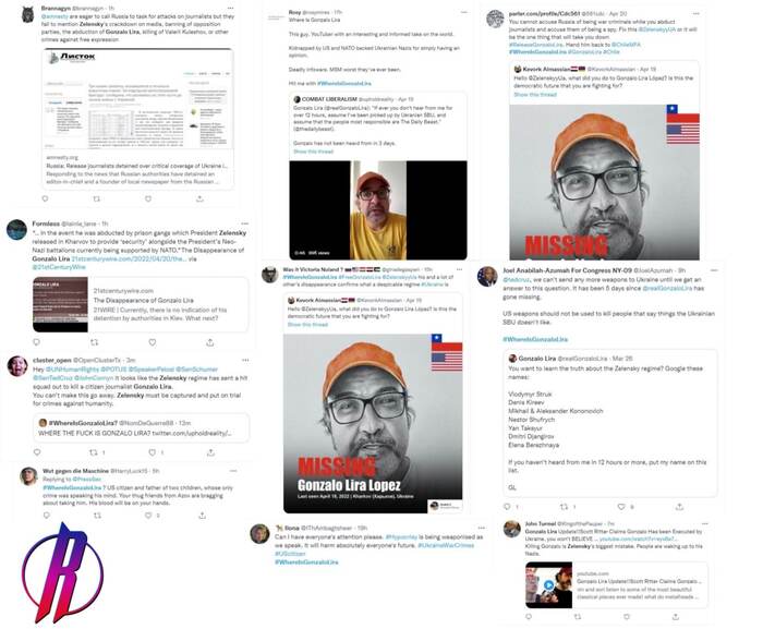 После сообщений об исчезновении и возможном убийстве блогера тысячи пользователи соцсетей со всего мира запустили хэштег #WhereIsGonzaloLira, призывая к ответу Зеленского и украинских властей, причастных к пропаже и, предположительно, смерти американца.