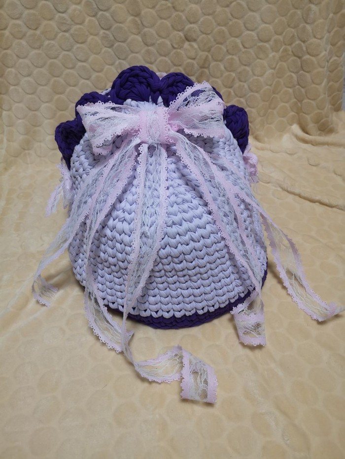 Не хотелось выбирать банальный розовый, поэтому решила вязать в фиолетовых тонах.