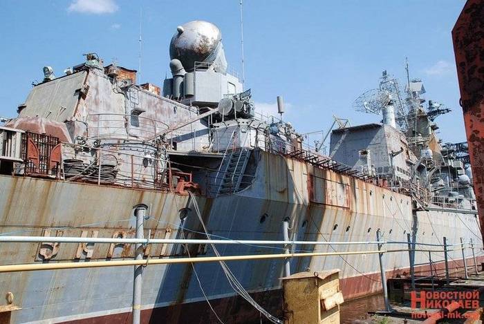 Строительство ракетного крейсера "Украина" закладывали еще в 1984 году, после распада СССР недостроенный корабль был выведен из состава ВМФ России и передан украинским ВМС в 1993 году. Киев в 1996-м проект заморозил из-за нехватки финансирования. В 2017 году президент Пётр Порошенко указом демилитаризовал судно. Оно по сей день стоит в городе Николаев — с крейсера планируют снять вооружение и продать оставшиеся части корабля на лом.
