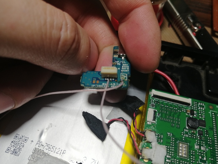 отключаем акб( который всего на 1000mah), затем шлейф.