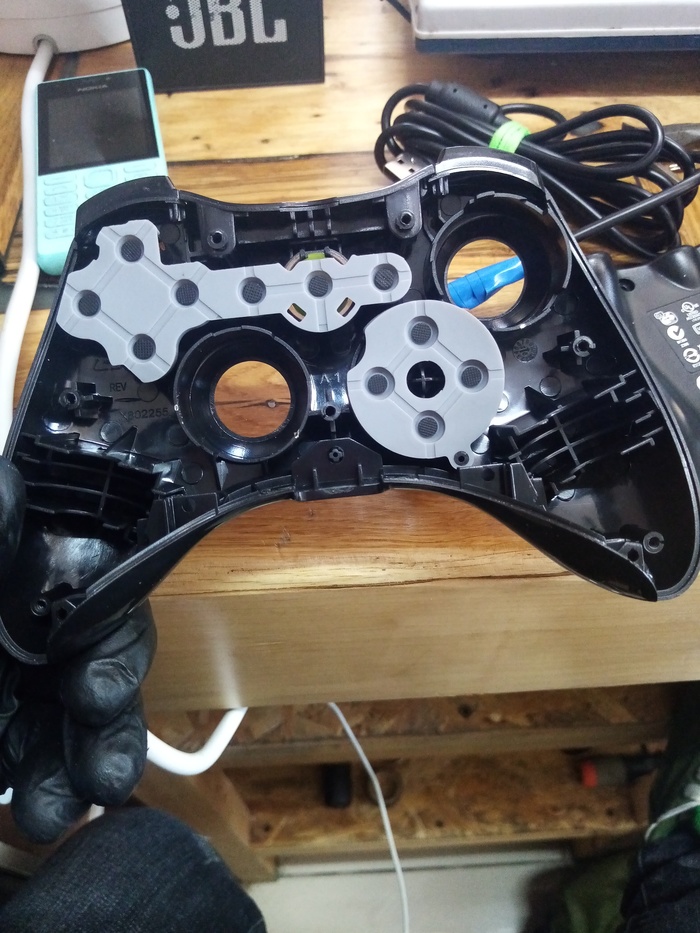 на этот раз попал ко мне геймпад от xbox 360 (со слов владельца : оригинал по скидке взял, кнопка lb не работает и провод подтянуть внутрь)