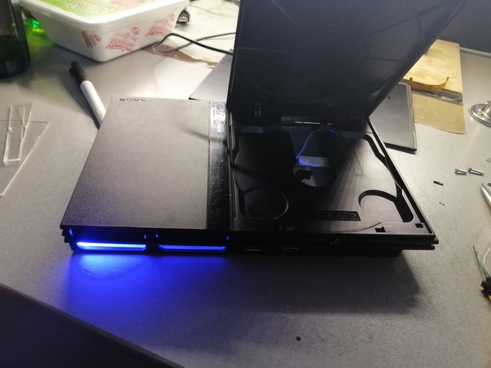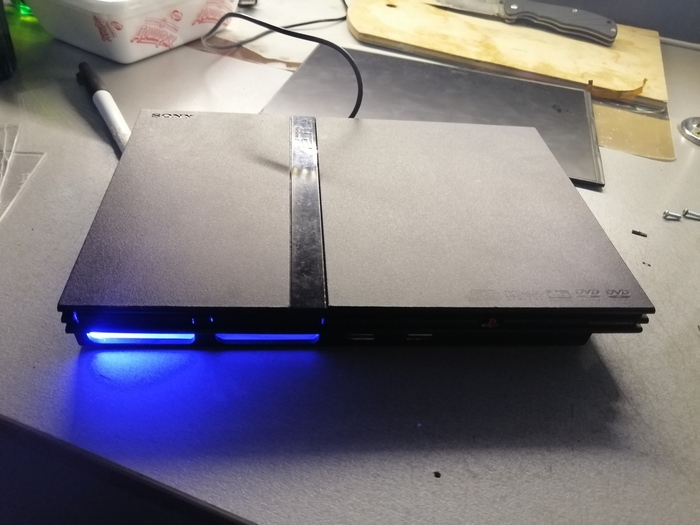 на данный момент еще планирую под крышку dvd привода вклеить фейковый шпиндель на котором будет жить диск от ps4 для полноты картины :-)